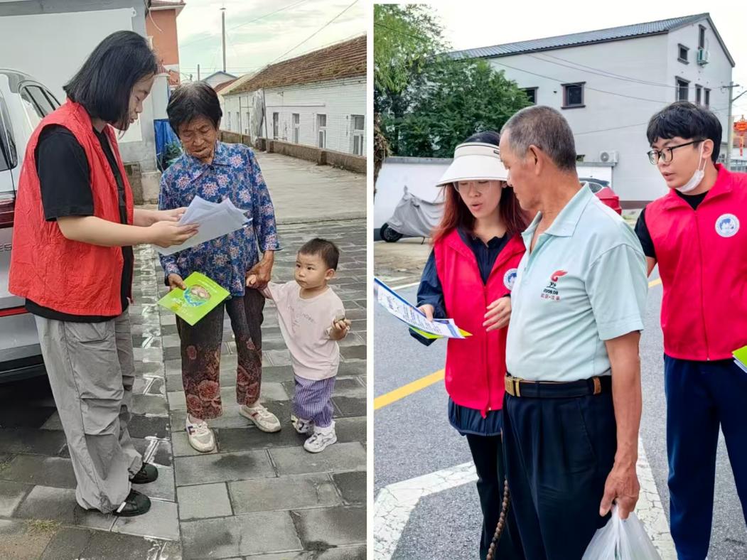 实践团成员在街边巷口分发并讲解节能手册