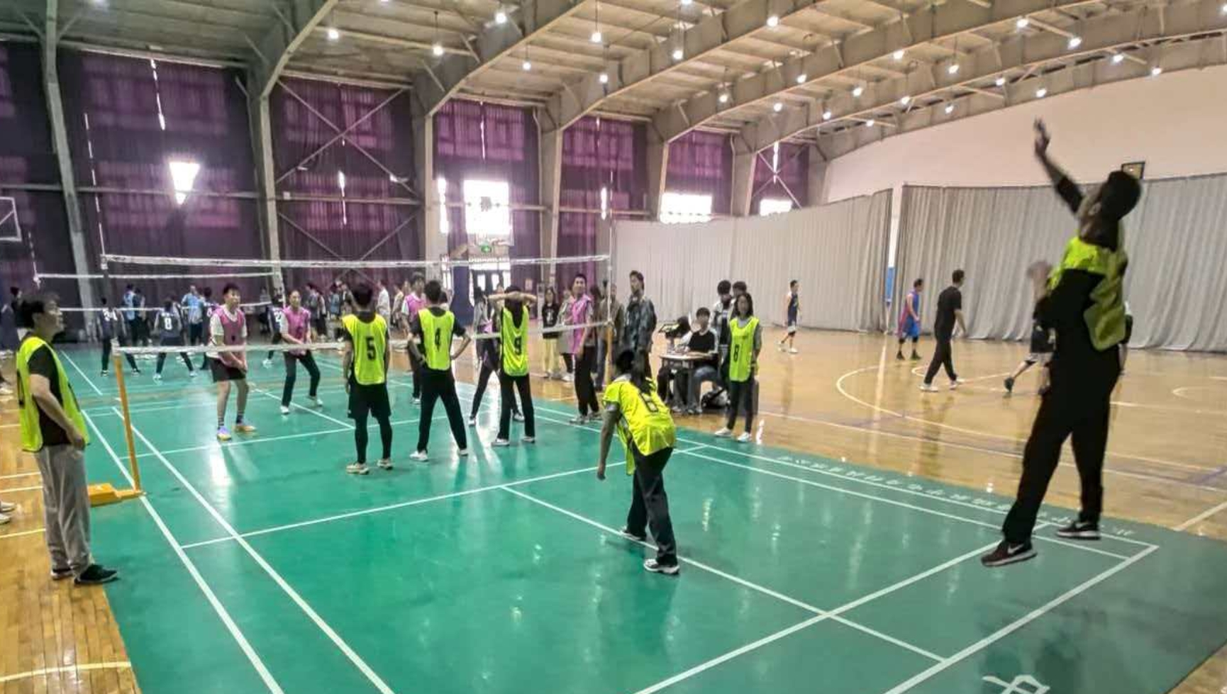 比赛伊始,双方运动员秉承“友谊第一、比赛第二”的体育精神,相互握手致意,传递着真挚的友好与尊重。随着裁判一声哨响,比赛正式打响!运动员们瞬间点燃斗志,奋勇争先,顽强拼搏——传球如电、扣杀如虹、拦网如墙、扑救如风,精湛的球技与昂扬的竞技状态交相辉映!一声声“我来”喊出责任与担当,一句句“没事”吼出无畏与信心;场外更是激情澎湃,“好球”“加油”的呐喊声此起彼伏。队员们尽情挥洒汗水与热情,攻势如潮,防守如磐,打出了气势,拼出了血性,将团队精神与协作能力展现得淋漓尽致!