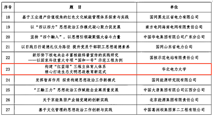 近日,中国电力思想政治工作研究会公布了2025年基层思想政治工作创新案例名单,公司yl7703永利集团与马克思主义学院联合申报的《构建“红蓝绿”三维立体育人体系 精心打造生态文明思政教育新范式》案例成功入选。
