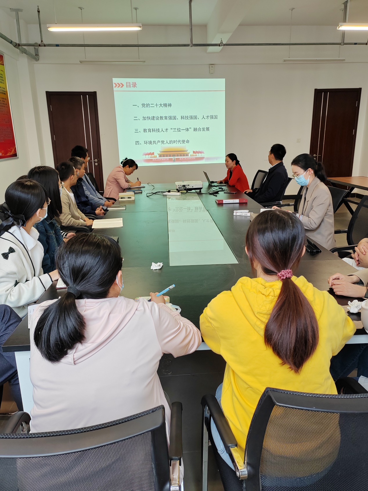 此次党课就充分发挥环境共产党人使命担当提出了几点工作方向:要牢牢把握新时代人才培养需求,以高质量发展为主题,以提高员工创新能力为主线,强化新时代教师队伍建设;优化考试招生制度,深化培养模式改革,完善学科专业布局,健全产学研深度融合平台,加快培养国家急需的高层次人才;要不断创新人才激励机制,营造尊重知识、尊重人才、尊重创造的氛围,构建人尽其才、才尽其用的制度环境;要着力形成人才国际竞争的比较优势,聚天下英才助力中华民族伟大复兴。