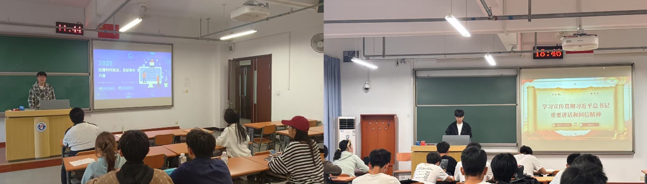“软肩膀挑不起硬担子。”应化2401班团支部、碳储2301团支部、化学2201团支部介绍了五四青年节,其既是历史传承与精神象征,也是青年发展的时代坐标。并分别引用了《激励新时代青年在中国式现代化建设中挺膺担当》和《习近平总书记给谢依特小学戍边支教西部计划志愿者服务队队员回信》中的几句话开展理论学习。团支书们带领大家了解“挺膺担当”的深刻内涵与时代要求,明确中国式现代化建设中青年的历史使命,并分别从创新驱动发展、乡村振兴实践、自信传承、绿色低碳转型四方面细化讲解。