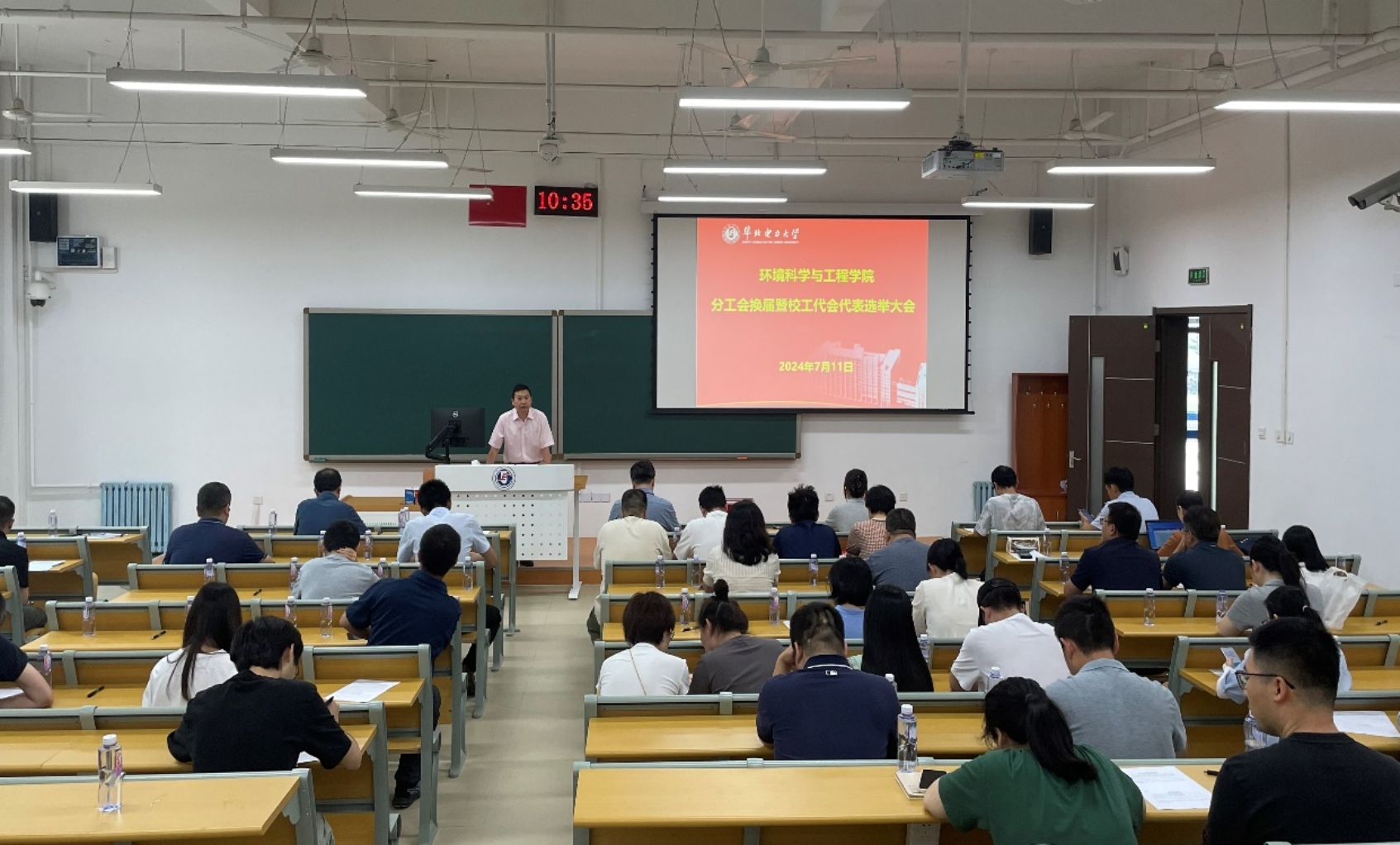 7月11日上午,环境学院在主F101召开分工会换届暨第十届校工会会员代表大会代表选举大会,学院领导班子和分工会全体会员参加大会,学院分工会委员陈中山同志主持会议。